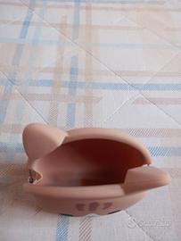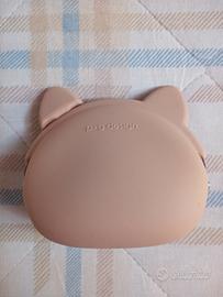 Bellissimo portamonete a forma di gatto, della marca p+g design. È di colore beige ed è realizzato in silicone.