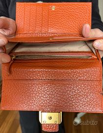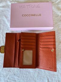 Portafoglio in pelle, Coccinelle, come nuovo, color mattone. 12 scomparti per le carte, 1 con cerniera per denaro. cm. 18 di lunghezza, 10 di altezza.