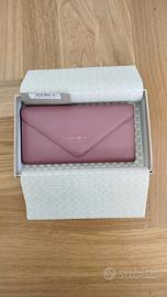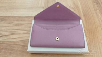 Vendo portafoglio rosa grande con spazio per tessere e porta monete, stampa saffiano, con confezione originale. Sono disponibile alla consegna in diverse zone di Roma.
