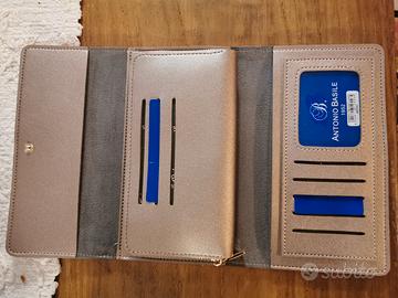 Portafoglio nuovo grigio con diversi sconparti per carte e monete