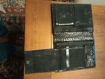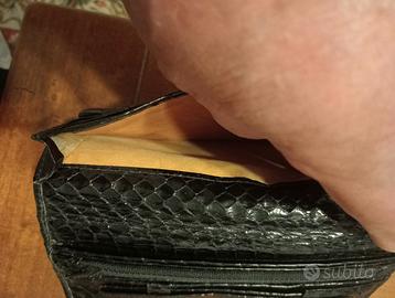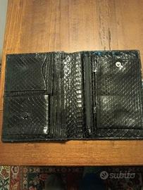 Portafoglio in pelle di serpente,nuovo,mai usato,con spazi per carte di credito, assegni, monete, documenti.