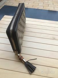 Portafoglio con cerniera realizzato in tessuto con monogramma GG nella variante colore beige e marrone scuro. Il modello è dotato di dodici fessure per carte di credito e di diversi scomparti, per la massima versatilità di utilizzo. Usato, ma in ottime condizioni Tessuto rivestito con monogramma GG beige e marrone scuro. Finiture in pelle marrone. Interno: 12 fessure per carte, 3 scomparti per banconote e 1 tasca portamonete con cerniera Chiusura con cerniera L 19 cm x A 10 cm x P 2,5 cm Peso: circa 190 g