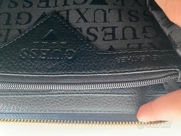 Portafoglio Guess Lux, nero con cerniere dorate.