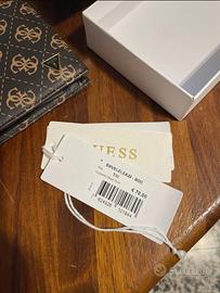 📐 Misure compatte, con logo GUESS, interno ben organizzato per carte, banconote e monete.