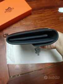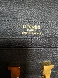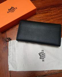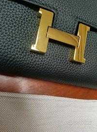 Portafoglio Hermès Constance in vera pelle, nero classico, con fibbia dorata a forma di H. Morbido e confortevole al tatto, raffinato ed elegante, con bordi lisci e dritti. Dispone di due ampi scomparti per banconote, una tasca con cerniera e 12 scomparti per carte. Classico e pratico, adatto sia per uomo che per donna. Nuovo di zecca con confezione regalo. Ricevuto esattamente come in foto. Spedito entro 1-3 giorni dall'acquisto.