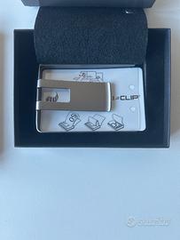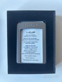 Vendo elegante portafoglio I-CLIP Original, portacarte ultra-leggero e compatto Made in Germany. Il modello presenta la copertura in pelle nera con finitura bottalata (grana naturale), che offre un ottimo grip. Contiene fino a 12 tessere/carte di credito e numerose banconote grazie alla clip integrata. Ottime condizioni (mai usato), pelle ben tenuta e clip perfettamente scattante. Viene fornito con la sua confezione originale originale (box nero I-CLIP)