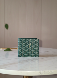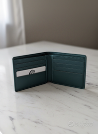 Elegante portafoglio in ecopelle con iconico design ispirato, realizzato in tonalità verde smeraldo.