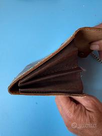 Vendo portafoglio da Bikers, misure 14x10,5 cm in pelle di pitone, con catena in acciaio 42,5 cm di lunghezza, con moschettone in alluminio.
