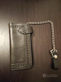 Vendo splendido portafoglio lungo in stile biker, realizzato in robusta pelle nera di alta qualità con lavorazione artigianale. Un pezzo di carattere, perfetto per chi ama il mondo custom, le moto o semplicemente un look rock ed intramontabile.
