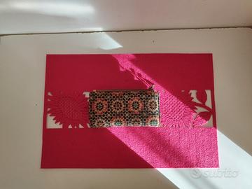- Chiusura: patta con motivo geometrico colorato, vivace e moderno