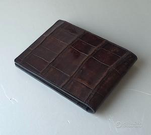 Portafoglio originale in vera pelle di coccodrillo, lavorazione artigianale, con elegante targhetta applicata con iniziali “F.A.” in oro 18 carati dal peso di circa 2 grammi.
