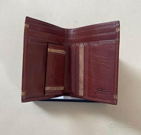 Elegante portafoglio in vera pelle. - Materiale: vera pelle. - Colore: marrone. - Design con strisce decorative.