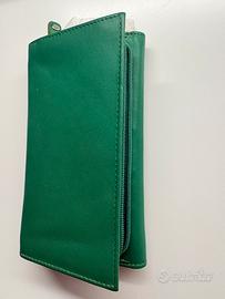 Vendo elegante portafoglio in vera pelle colore verde, pratico e ben organizzato. 📏 Dimensioni: 15 cm x 9 cm x 2 cm ✔ Oltre 10 scomparti per carte ✔ Tasca trasparente per documenti ✔ Ampio vano per banconote ✔ Chiusura con bottone ✔ Pelle morbida e resistente Il portafoglio è in buone condizioni generali, con normali segni di utilizzo visibili nelle foto, ma perfettamente funzionante. Ideale per uso quotidiano grazie alla sua capienza senza essere ingombrante.