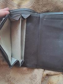 Portafoglio firmato Just Cavalli, modello con chiusura gioiello frontale in metallo color oro anticato e borchiette decorative.