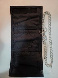 Vendo portafoglio originale Levi's in tessuto nero, dotato di catena metallica e moschettone. Modello pieghevole con scomparti per carte e monete.