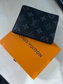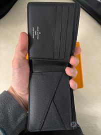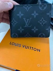 Portafoglio Louis Vuitton originale a tela Monogram Eclipse nera e grigia, il portafoglio Multiple si distingue per la pratica organizzazione interna e le numerose fessure per carte di credito e banconote. Le dimensioni consentono di riporlo comodamente nella maggior parte delle tasche.