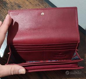 Portafoglio Vivienne Westwood in pelle, colore rosso/borgogna, chiusura con clip a pressione. Il portafoglio non è mai stato usato, no scatola. La richiesta è di 160 euro.