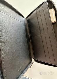 Vendo portafoglio messanger da uoko (o anche da donna) Versace Collection. Elegante in pelle saffiano nera e targhetta in metallo con medusa incisa. Cerniera su 3 lati, ha scomparti per carte e penna.