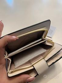 Dettagli interno: tasca con zip, 3 tasche a bustina, 6 scomparti per carte di credito, scomparto portadocumenti