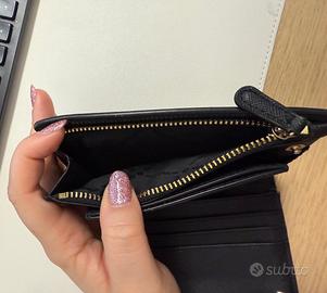 Portafoglio Michael Kors originale colore nero, modello compatto con porta carte integrato.