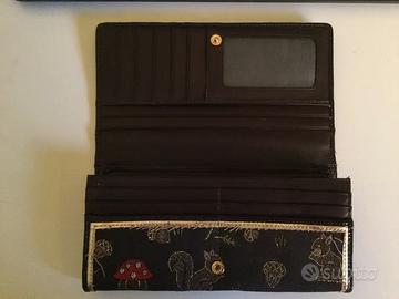 Portafoglio Braccialini in tessuto motivo scoiattolo. Chiusura con automatico, tasca interna portamonete con chiusura lampo e 12 scomparti per carte di credito. Piccolo difetto sul bordo esterno.