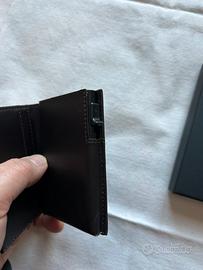 Portafoglio minimalista uomo Wilbest. Come nuovo. In vera pelle bovina con funzioni pop up ( cassa in alluminio, leggero e resistente) fino a 6 carte e RFID. Scomparto per banconote e ulteriore scomparto per carte/ biglietti da visita. Misure 10cm x 7 cm x 2 cm