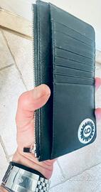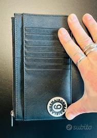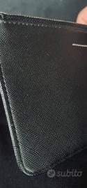 Portafoglio verticale in safiano MM6 unisex Super piatto. (ideale da tasca interna di una giacca, o messo senza ingombro in una pochette) Tasca principale chiusa con cerniera Seconda tasca anteriore oltre agli 8 scomparti per documenti e carte di credito. Mai usato. Etichetta di originalità all'interno della tasca e fodera interamente loggata Guardare foto per capire meglio le dimensioni Purtroppo ho smarrito la scatola