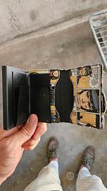 Il portafoglio è in vinile, è piccolo e comodo con alloggiamento portatessere e portabanconote.
