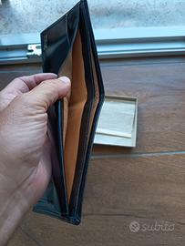 Portafoglio in pelle lucida. Foderato con due scomparti separati e portamonete. Mai usato.