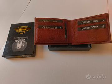 Portafoglio Norton motorcycles in vera pelle marrone, con scatola.