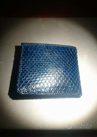 Portafoglio nuovo artigianale da uomo in vera pelle di pitone blue, internamente presenti 6 tasche porta tessere in pelle nera + 2 tasche porta documenti, ritiro milano zona san siro