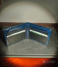 Portafoglio nuovo artigianale da uomo in vera pelle di pitone blue, internamente presenti 6 tasche porta tessere in pelle nera + 2 tasche porta documenti, ritiro milano zona san siro