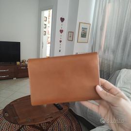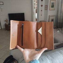 Elegante portafoglio in pelle, nuovo mai usato. Colore marrone chiaro, dimensioni 17 x 11 cm.