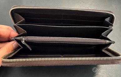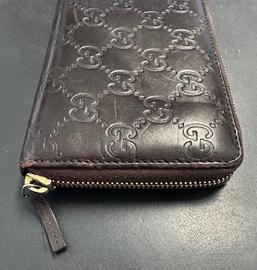 Portafoglio in pelle marrone originale Gucci con cerniera.