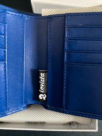 Portafoglio Invicta blu in pelle con scomparti porta carte di credito. Dotato di sistema antifrode per carta contactless.