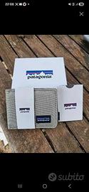 Portafoglio Patagonia grigio nuovo nella sua scatola. - Logo Patagonia sul davanti. - Design con logo ripetuto sul tessuto.