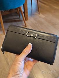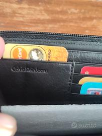 Portafoglio pelle Calvin Klein Jeans, 20 x 10, con cerniera esterna e interna, multi scomparti. Nuovo