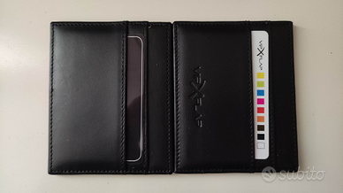 Portafoglio "magico" , porta carte con meccanismo di incastro banconote alternativo . Le banconote si inseriscono nei lacci fissi interni con l'apertura del portafoglio stesso.