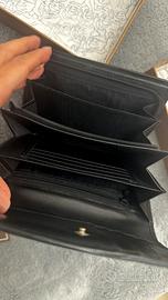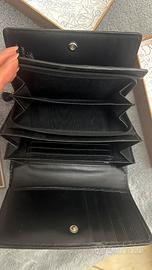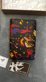Portafoglio nero tessuto goffrato con fantasia Magic Circus riporti e interno in cuoio porta carte di credito portamonete interno con cerni
