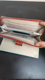 Vendo portafoglio da donna Piquadro Blue Square in pelle rossa con profili azzurro mai usato. misure 20x10x2