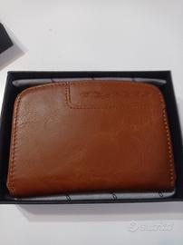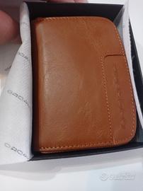 Portafoglio/portacarte Piquadro in vera pelle colore marrone/cuoio da portare a mano oppure da inserire in un'altra borsa misura 10x13 cm. come da foto. Con scatola.