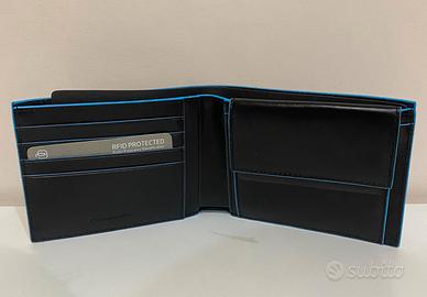 Portafoglio Piquadro uomo in pelle con portamonete e protezione anti frode RFID MISURE: 12,50x9x2