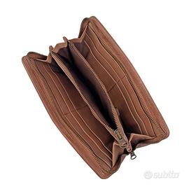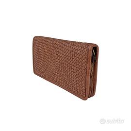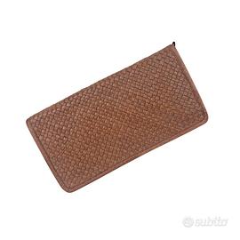 Questo elegante portafoglio in vera pelle intrecciata colore cuoio è l’accessorio perfetto per chi ama lo stile raffinato e la qualità artigianale. Realizzato in pelle pieno fiore lavata, si distingue per il suo motivo intrecciato che valorizza l’autenticità del materiale. Perfetto per ogni occasione, è dotato di dodici scomparti per carte di credito, due spazi dedicati alle banconote e un pratico portamonete interno con zip. Il comodo laccetto da polso amovibile aggiunge praticità, permettendoti di portarlo con disinvoltura in ogni situazione. Con dimensioni di 23 cm di lunghezza, 12 cm di altezza e 3 cm di larghezza, unisce eleganza e funzionalità, completando con classe ogni tuo look.