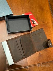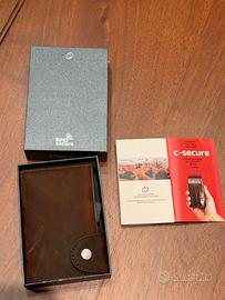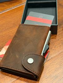 Portafoglio porta carte tecnologia Rfid Pelle marrone Sistema uscita carte a scatto Nuovo imballato