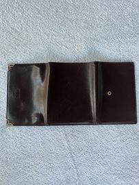 Elegante articolo vintage, in vera pelle, di fine produzione artigianale, praticamente nuovo, 2 tasche interne, un porta assegni, 1 tasca interna portamonete dotata di zip, una tasca grande. Si ripiega su tre posizioni. Cm 28,5 x 14 (apert0) cm 10,5 x 14 (chiuso)