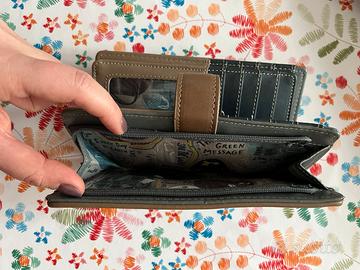 Portafogli con due grandi scomparti porta carte (20 postazioni disponibili) e porta monete chiusura con zip