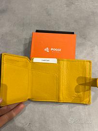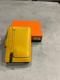 Portafoglio/portatessere in vera pelle per donna. POGGI MILANO pretezione RFID Mini Colore giallo