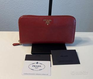 Vendo portofoglio Prada come nuovo usato pochissimo pelle saffiano rossa con chiusura zip consegna a mano arezzo e dintorni posso anche spedire