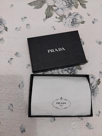 Portafoglio Prada in materiale Tela Saffiano. Colore Nero. È un portafoglio molto versatile, dotato di portamonete, porta banconote, porta carte di credito / tessere. Compatto poichè si chiude a libro ma dotato di tutti gli scomparti di un normale portafoglio.