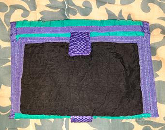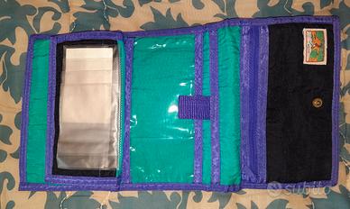 Portafoglio, portatutto, pieno di scomparti (guardate tutte le foto) nuovo, sempre tenuto coperto, multicolor, dimensioni lunghezza 19 cm, altezza 13 cm, profondità 3 cm.